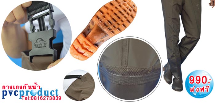 - เช่นใส่ตกปลา พร้อมรองเท้า ที่ติดกับกางเกง